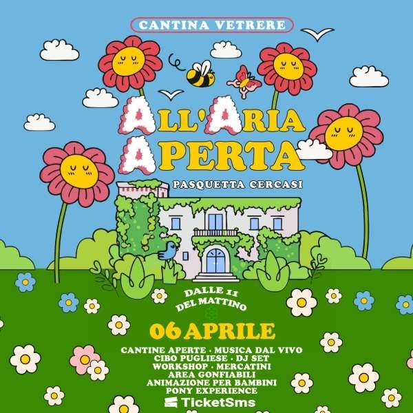 Lunedì 6 aprile 2026 Discoteca Cantine Vetrére di Montemesola ospita All’ Aria Aperta – Pasquetta cercasi una giornata tra i filari con cibo, musica e intrattenimento