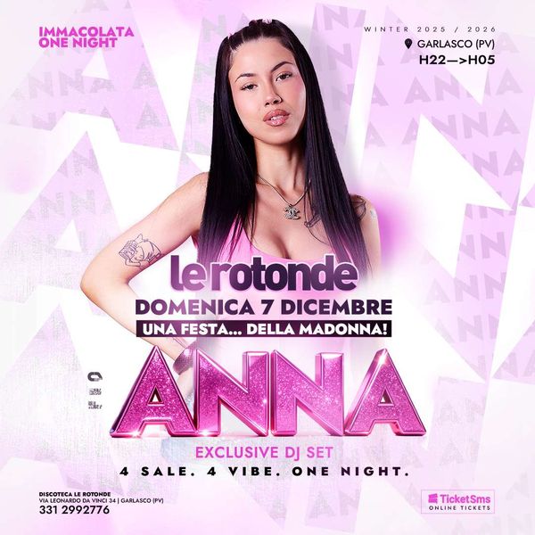 Domenica 7 dicembre ANNA – LE ROTONDE alla Discoteca Le Rotonde Garlasco una serata hip hop e commerciale con ospite speciale ANNA