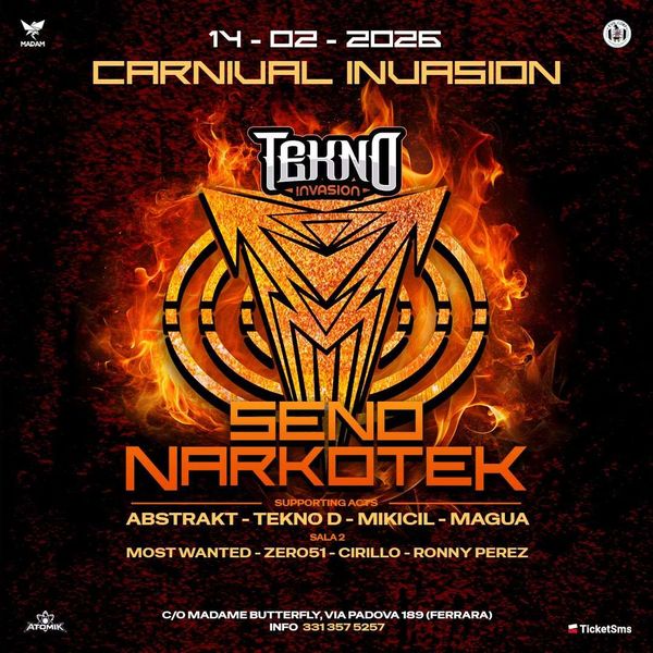 Sabato 28 febbraio vivi ATOMIK presenta CAMACHO & AMYGDALA alla Discoteca Madame Butterfly di Ferrara per una notte fuori controllo dove il battito diventa rituale e il suono energia pura