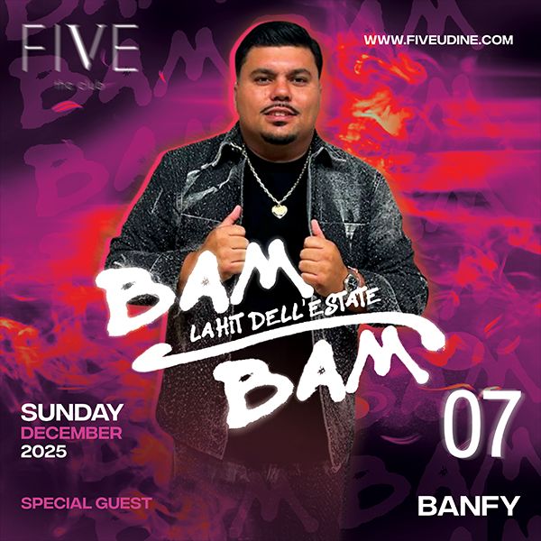 Partecipa a Bam Bam Party w/Banfy alla Discoteca FIVE di Tavagnacco per una serata dance e commerciale