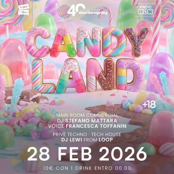 Sabato 28 febbraio Candyland al Dorian Gray di Verona: una notte dolce con hit commerciali, energia e atmosfere travolgenti