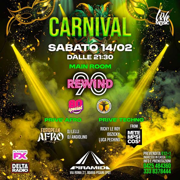 Una notte di Carnevale alla Discoteca Piramidi di Boara Pisani tra maschere coriandoli e tanta musica dance