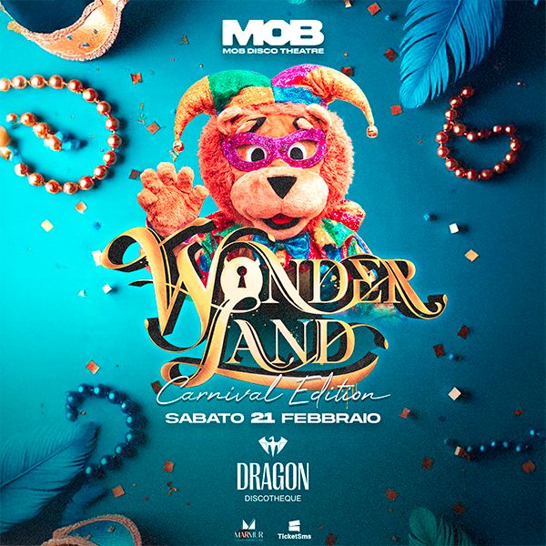 Sabato 21 febbraio vivi Carnival Wonderland al Mob Disco Theatre di Carini una notte magica di Carnevale atmosfera surreale scenografie spettacolari e energia travolgente