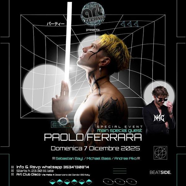 Domenica 7 dicembre Disco Techno alla Discoteca Art Club Disco Desenzano del Garda una serata techno con special guest Paolo Ferrara e N4C