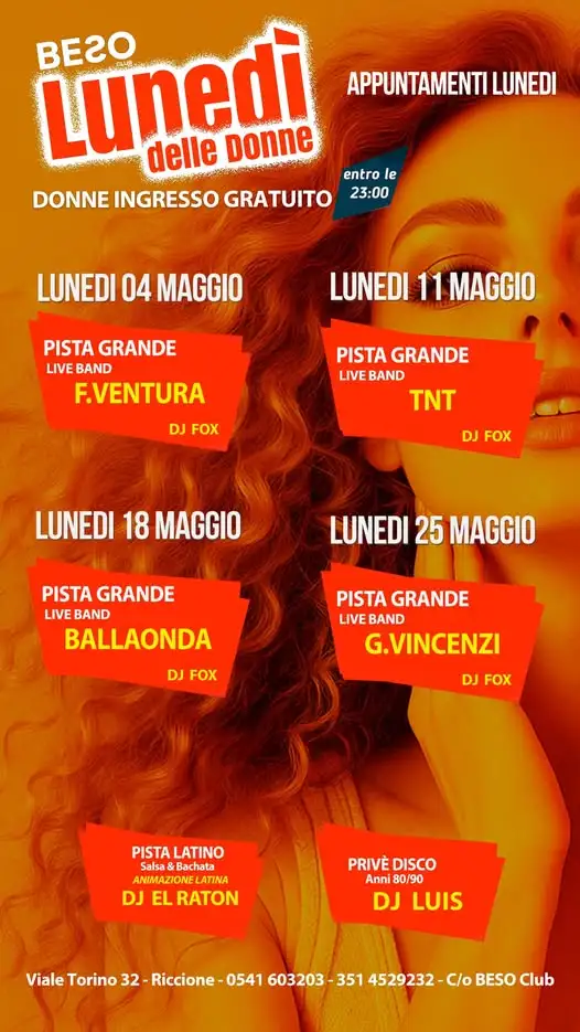Il momento che tutti aspettavate è finalmente arrivato. Il 4 maggio 2026 Lunedi delle Donne trasformerà la riviera in un tempio del divertimento. Preparati a vivere un’esperienza leggendaria nel cuore di Riccione. Il Beso Club apre le sue porte per una serata che resterà scritta nella storia della vita notturna.