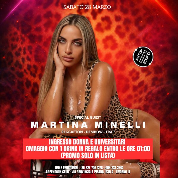 Sabato 28 marzo 2026 Girls Party con Martina Minelli all Appendaun Club di Livorno per una notte tutta al femminile tra musica reggaeton trap e dembow