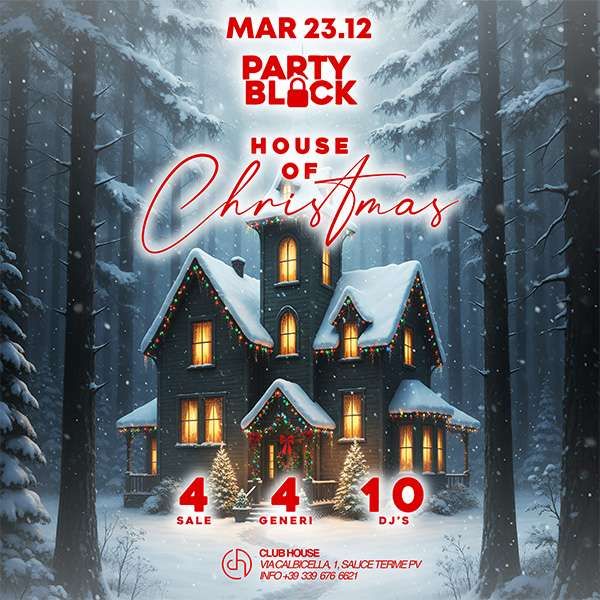 Martedì sera Club House Salice Terme evento House of Christmas Party Block quattro sale musicali quattro generi djset atmosfera natalizia