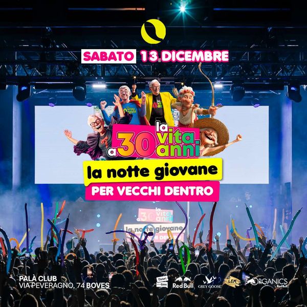 Sabato 13 dicembre La Vita a 30 Anni alla Discoteca Palà Boves una serata revival con hit anni 90 e 2000