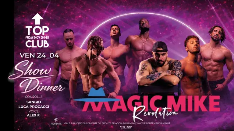 Il divertimento più travolgente della Riviera sta per arrivare. Segna questa data sul calendario: il 24 aprile 2026 Magic Mike Revolution trasformerà la tua serata in un sogno ad occhi aperti. Il Magic Mike Revolution Frontemare è l’evento che stavate aspettando per vivere emozioni forti e puro spettacolo.