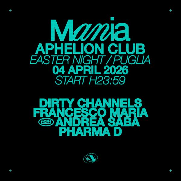 Sabato 4 aprile 2026 Mania Easter Night con Dirty Channels accende Aphelion Club di Trani con la migliore musica house
