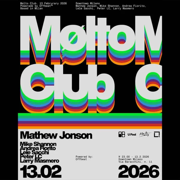 Venerdì 13 febbraio 2026 vivi MOLTO CLUB – EPISODE 3 al Downtown di Milano con Mathew Jonson e altri ospiti per una notte di house, disco e groove senza fine