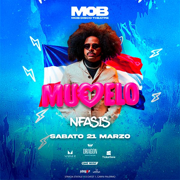 Sabato 21 marzo 2026 Mob Disco Theatre di Carini ospita MUEVELO X NFASIS una notte reggaeton con il dembow più caldo del momento