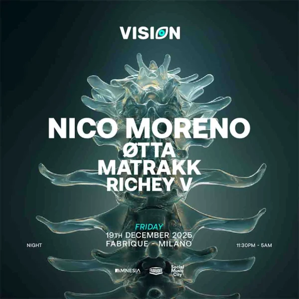 Venerdì 19 dicembre vivi la notte con NICO MORENO, ØTTA, MATRAKK e RICHEY V al Fabrique di Milano dalle 23:30