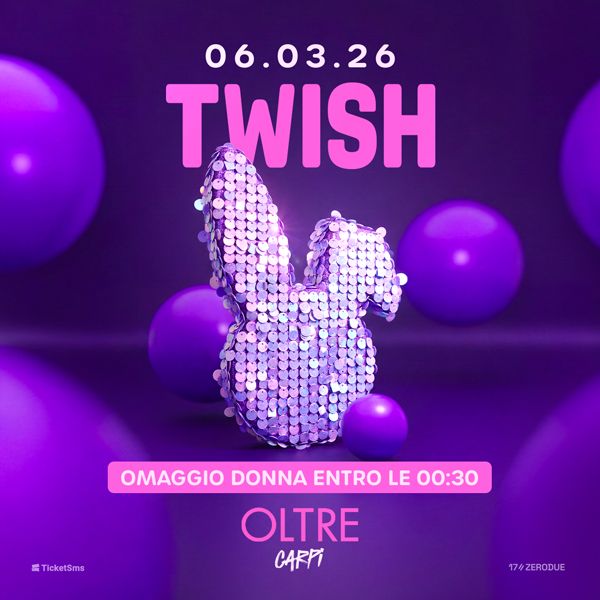 Venerdì 6 marzo OLTRE TWISH al Oltre Club di Carpi una festa pop con glitter e energia fuori scala
