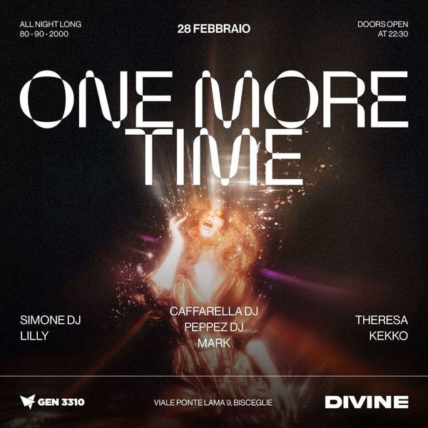 Sabato 28 febbraio vivi One More Time al Divine Club di Bisceglie una notte revival dance energia e divertimento assicurati