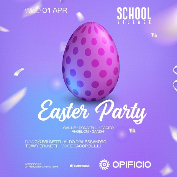 Partecipa all evento School Village Easter Party presso New Opificio di Terni per una notte di musica dance commerciale e tanto divertimento