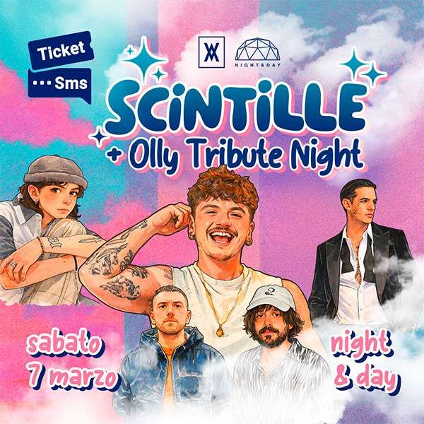 Sabato 7 marzo Scintille + Olly – Tribute Night alla Discoteca Night and Day di Noale una notte Indie energia e divertimento