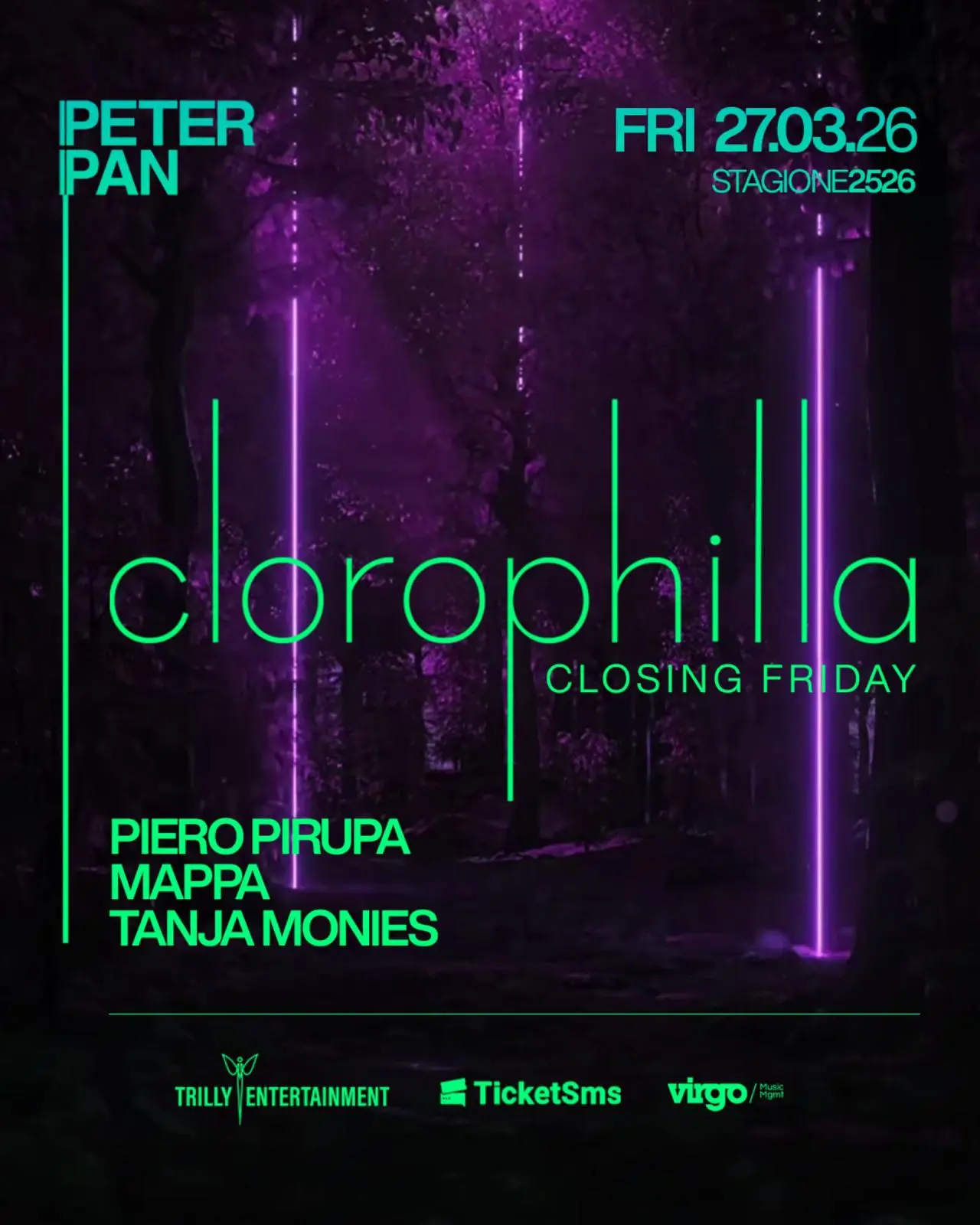 Le serate del Peter Pan Riccione sono ricche di animazioni e scenografie a tema che cambiano di serata in serata. In consolle si alternano i grandi ospiti internazionali e i Deejay Resident del locale.