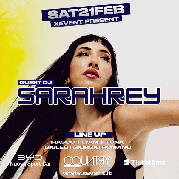Sabato 21 febbraio vivi X pres Sarah Rey al Country DiscoClub di Palermo una notte unica con ospite internazionale direttamente da Ibiza per un party house e dance indimenticabile